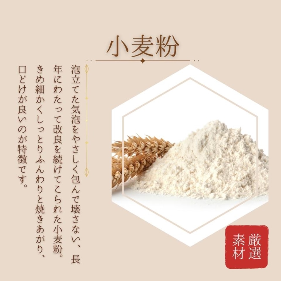 原材料:小麦粉、卵、砂糖、他 保存方法:高温・直射日光をさけて下さい 賞味期限:10日程度